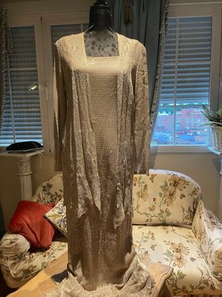 Vestido y chaqueta beige y oro