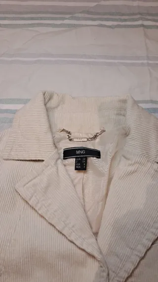 Chaqueta de pana en color beige de la marca Mango, con corte corto muy favorecedor y fácil de combinar. ✔ Talla 36 ✔ Tejido de pana suave y calentita, ideal para entretiempo u otoño ✔ Diseño actual y versátil, perfecta con vaqueros, vestidos o faldas ✔ En estado como nueva, sin signos de uso 📏 Medidas aproximadas: • Hombros: 39 cm • Largo: 50 cm • Manga: 58 cm