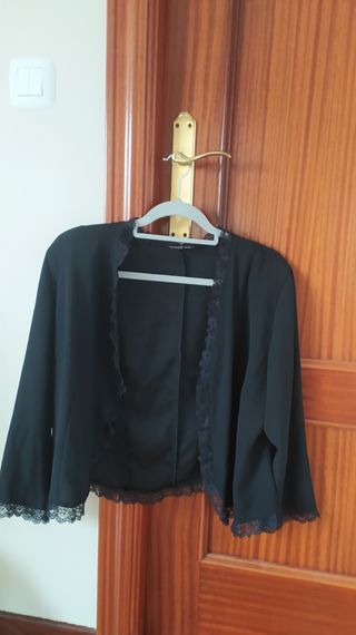 Vestido y chaqueta en negro y detalles dorados, perfecto para fiestas, boda, comunión, bautizo... La parte dorada de la chaqueta es transparente Está en perfecto estado, solo tuvo una puesta. Talla 40/42. Medidas vestido: -Sisa a sisa 51 cm -Cintura 45,5 cm (91 cm de circunferencia) -Largo 89,5 cm Medidas chaqueta: -Sisa a sisa 52 cm -Cintura 46 cm (92 de circunferencia) -Largo 59 cm