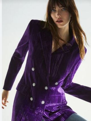 Vestido/ Chaqueta de terciopelo de Zara . Edición limitada. Cuello solapa , bolsillos y botones joya tanto en delantera como en las mangas . Va forrado y tiene botones interiores para abrochar. Nuevo a estrenar. Talla M