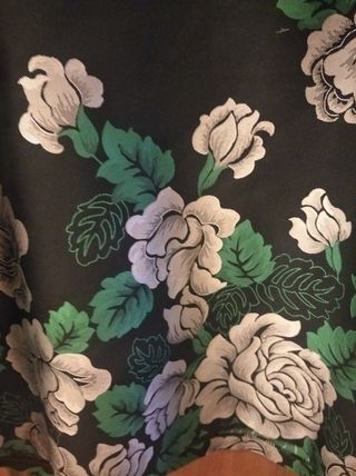 Precioso vestido de gasa de la marca Cortefiel, en color negro con estampado floral blanco. Tiene manga larga, corte fluido y un ligero vuelo en la falda muy favorecedor y cómodo. Ideal para entretiempo o para combinar con botas y chaqueta en otoño/ invierno. Tela ligera, con forro interior y cierre discreto en el escote. Perfecto estado