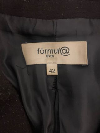 Elegante chaqueta de la marca VIDRIO. - Color negro. - Diseño entallado. - Cierre de dos botones. Bonito pantalón un poco acampanado y con el detalle del dobladillo en el bajo. Cremallera delantera y botón Es una talla 36 pero pequeña