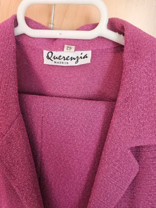 Elegante traje de chaqueta para mujer. - Diseño moderno con cuello alto. - Cierre de un botón. - Dos bolsillos frontales. - Corte entallado. - Tela fina No usado nunca