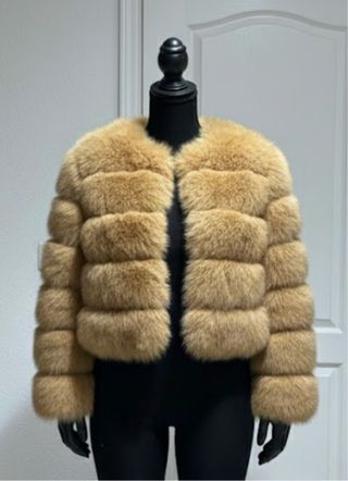 Chaqueta de pelo sintético con un diseño moderno y elegante. - Pelo sintético de alta calidad. - Diseño corto y estilizado. Talla S / nuevo