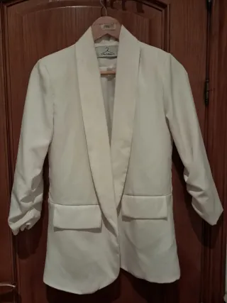 Chaqueta elegante de color blanco, ideal para cualquier ocasión. - Diseño moderno con solapas. - Mangas arrugadas. - Bolsillos frontales.