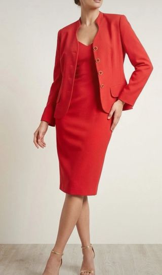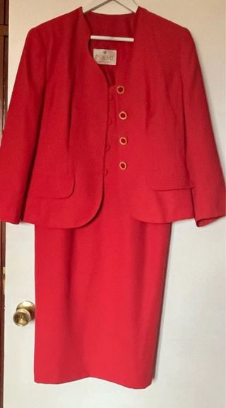 Elegante Conjunto Rojo Chaqueta y Vestido D’ors