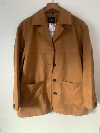 Chaqueta de corte clásico con un acabado que imita al ante. Es una prenda versátil y elegante. - Cierre de botones. - Dos bolsillos frontales. - Cuello solapa.