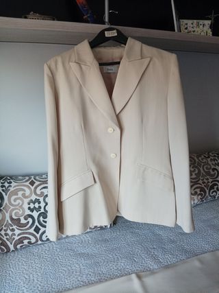 Elegante traje de chaqueta de la marca PICOTAZOS en color beige. Ideal para ocasiones formales o para añadir un toque sofisticado a tu vestuario. - Diseño clásico con solapas. - Cierre de botones. - Dos bolsillos frontales con solapa.