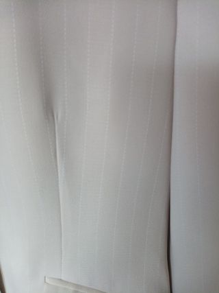 Elegante traje de chaqueta con un sutil estampado de rayas diplomáticas. - Color beige. - Talla M (38/10). - Cierre de dos botones. - Bolsillos delanteros con solapa.