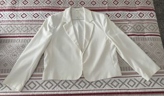 Chaqueta de vestir corta de color blanco. Un básico elegante para cualquier ocasión. - Diseño moderno y favorecedor. - Corte entallado. - Cierre de un botón.