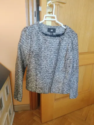 Chaqueta H&M tejido gris y negra Se puede lavar.