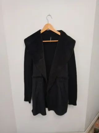 Chaqueta larga negra mujer antelina y punto