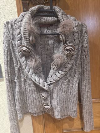 Chaqueta de punto con un elegante cuello de efecto piel. - Diseño moderno y versátil. - Tacto suave y agradable. - Ideal para complementar cualquier atuendo.