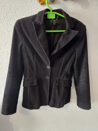 Elegante blazer de la marca Elena Miró en color marrón. - Cierre de botones dorados. - Detalle de terciopelo en los bolsillos y cuello.