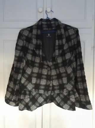 Elegante chaqueta de cuadros con un diseño moderno y favorecedor. - Cortes delantero y trasero - Detalle de volante en el bajo. Queda muy bien - Cierre de botones elegantes