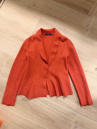 Chaqueta de punto con un diseño elegante y moderno. Chaqueta de color caldera, de lana y corte Peplum - Cuello solapa. - Cierre de un botón. - Bajo con pliegues. Zara pull & bear blazer mujer