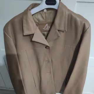 Elegante chaqueta de cuero. - Material: Cuero. - Color: Negro. - Diseño clásico con solapas. - Aunque marca talla 42, corresponde a una talla S. Medidas en fotos.
