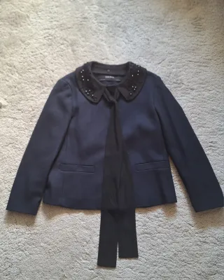 Vendo chaqueta elegante de Zara, sin estrenar y con su propia etiqueta. Trae talla S, pero sirve para talla L. Mide de hombros 43cm, de axila a axila mide 52cm y de largo total mide 74cm. Es de tela gordita y viene forrada en algodón.