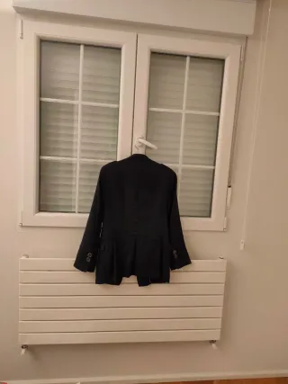 Elegante chaqueta negra de fiesta de la marca Coosy, modelo Jolie, en talla M. - Diseño con solapa pronunciada. - Cierre de botones. - Corte peplum en la parte inferior. - Nueva, con etiqueta (180€).