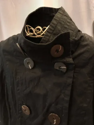 Chaqueta de color negro con un diseño moderno y elegante. Perfecta para añadir un toque de estilo a cualquier atuendo. - Cierre de doble botonadura. - Cuello alto. - Botones decorativos grandes.