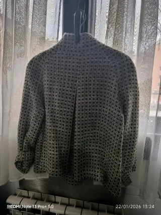 Chaqueta negra de terciopelo súper elegante, estilo vintage. Ideal para looks más arreglados o para combinar con vaqueros y darle un toque sofisticado. Tiene botones delanteros y forro interior. Muy favorecedora y atemporal 🖤 Talla xl pero no da mucho por no decir nada yo creo que es más M/L probablemente Producto subido tambien en vinted