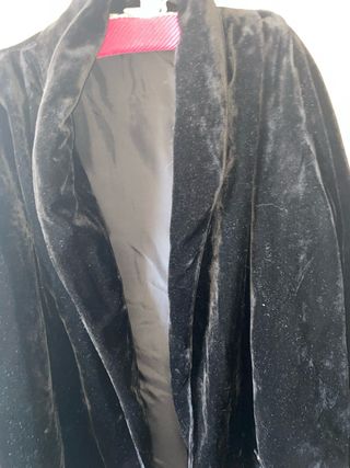 Elegante chaqueta confeccionada en terciopelo. - Material: Terciopelo. - Color: Negro. - las fotos no le hacen justicia, parece un terciopelo rara , y , aseguro que es buen terciopelo - tiene un bolsillito interno con cremallera muy practico