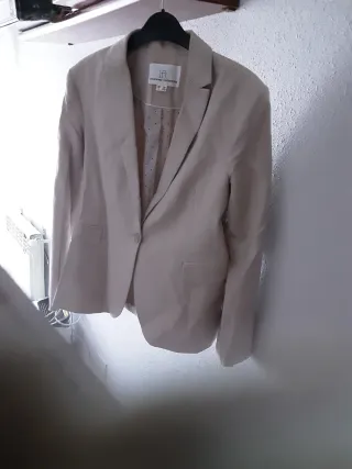 Chaqueta de vestir en color beige, con un diseño elegante y moderno. Perfecta para complementar cualquier atuendo. - Cierre de un botón. - Bolsillos frontales. - Forro interior con estampado de puntos.