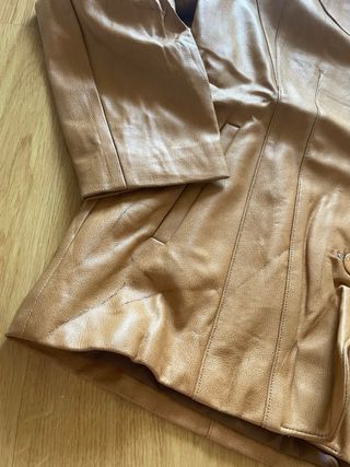 Elegante blazer , americana, chaqueta de piel para mujer,no pone talla calculo que una 40 Mide 45 cm axilas ,pecho 40 cm hombros 70 cm larga