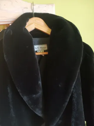 Chaqueta de pelo sintético con cinturón. - Diseño elegante y suave al tacto. - Acabado con pelo en cuello y puños.