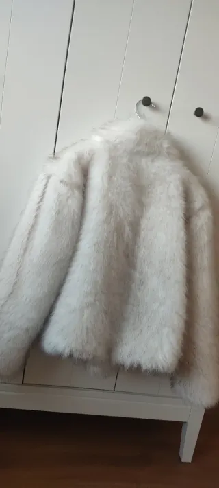 Chaqueta de pelo sintético con un diseño moderno y elegante. Perfecta para añadir un toque de estilo a cualquier atuendo. Casi sin uso, tacto muy agradable. Ancho de sisa 51/52. Largo desde el hombro 60. Cierre de corchetes . - Material suave y cálido. - Cierre con lazada. - Cuello alto.