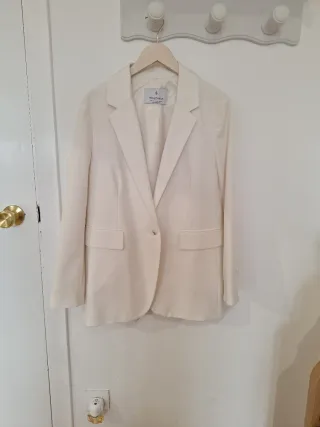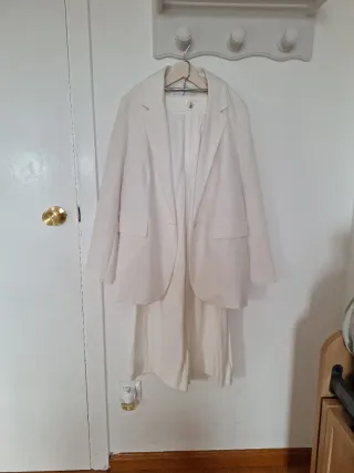 Elegante conjunto de pantalón y chaqueta. - Llevado solo 1 vez. Comprado la temporada pasada. - Color beige. - Diseño moderno.