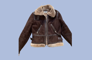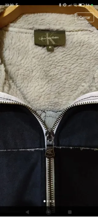 Chaqueta estilo aviador con forro de borreguito. - Cierre de cremallera. - Bolsillos frontales con cremallera. - Detalle de cintas y hebillas en los laterales. - Tiene algún desperfecto
