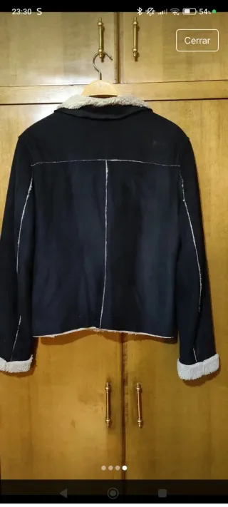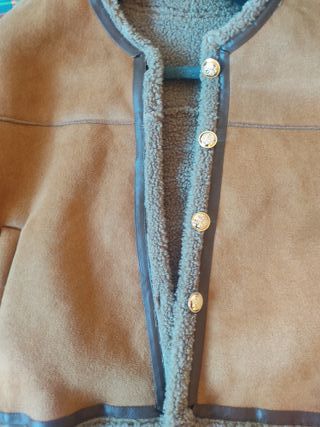 Chaqueta con forro interior tipo borrego. - Cierre de botones dorados. - Ribete de piel sintética. - Medidas: Ancho 60 cm, Largo Prenda y Manga 54,5 cm.