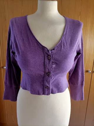 Chaqueta corta de punto fino. - Manga 3/4. - Cuello en V. - Cierre de botones.
