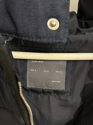 Chaqueta acolchada de la marca ZARA, con un diseño moderno y funcional. - Color azul marino. - Capucha integrada. - Cierre de cremallera frontal. - Bolsillos laterales con cremallera.