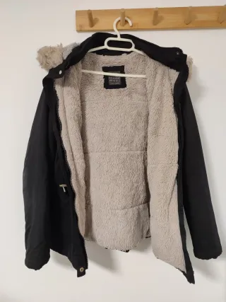 Chaqueta negra de Primark con forro interior. - Forro interior de pelo sintético. - Capucha con detalle de pelo. - Cierre de cremallera.