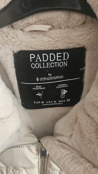 Chaqueta acolchada de Zara, ideal para el frío. Medidas: largo:70cm, de axila a axila:53cm, de hombro a hombro:40cm y de hombro a abajo:63cm. - Diseño acolchado horizontal. - Interior para ajustar. - Cierre de cremallera frontal. - Capucha integrada. - Bolsillos laterales con cremallera.