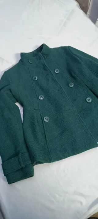 Chaqueta de tela con un diseño elegante y moderno. - Cuello alto. - Cierre de botones. - Puños ajustables con botón. - tiene un descuido en el forro de un bolsillo y en una manga como se ve en la foto, pero se puede arreglar sin problema