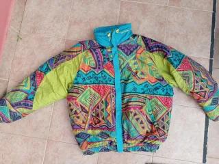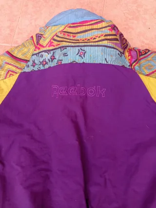 Chaqueta con un diseño vibrante y llamativo. Vintage. De los años ochenta a noventa. - Estampado geométrico en la parte superior. - Detalle del logo Reebok bordado en el pecho.
