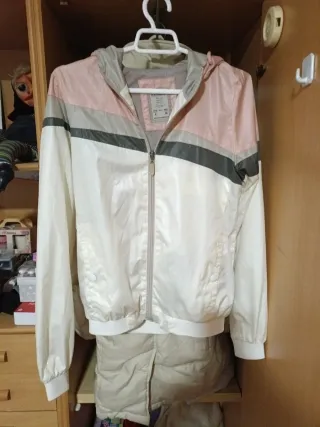 Chaqueta ligera con diseño de bloques de color y capucha. - Cierre de cremallera frontal. - Puños y bajo elásticos. - Bolsillos laterales con botón.
