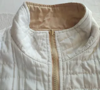 Chaqueta acolchada color beige por un lado y color blanco por otro lado. Se puede poner por ambos lados, girando también cuello y puños. Se cierra con cremallera y en ambos lados tiene 2 amplios bolsillos forrados. Chaqueta de tacto suave y calentita. Talla L. Marca HY. Composición 100% poliéster. Medidas de hombro a hombro 47 cm. De axila a axila 60 cm. Largo 75cm. #chaquetareversible #vinted #imprescindiblesdearmario #fondodearmario #chaqueta #chaquetaacolchada #chaquetaamericana #chaquetablanca #chaquetabeige #chaquetacasual #chaquetaconcremallera #chaquetafemme #chaquetafashion #chaquetaligera #chaquetatalla42