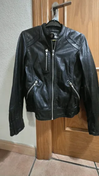 Chaqueta 100% cuero de MANGO. Mujer XXS TOTALMENTE NUEVA - 100% cuero. - Forro interior. - Diseño clásico. - Bolsillos con cremallera. - Cierre de cremallera. - Puños con cremallera. - Nueva, con etiqueta y cremalleras forradas. * NO ACEPTO DEVOLUCIONES !! Para cualquier duda escribidme ;)