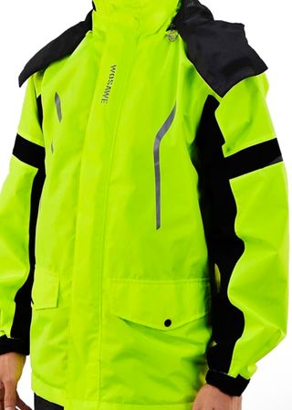 Chaqueta impermeable de la marca WOSAME, con un diseño moderno en verde y negro. - Capucha integrada. - Bolsillos frontales con solapa. - Cierre de cremallera. - Detalles reflectantes.