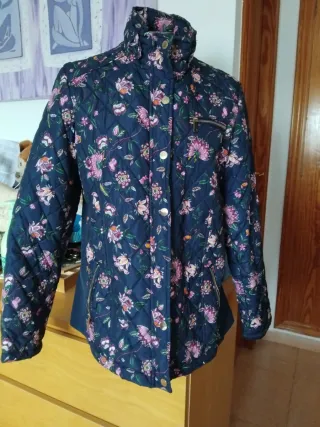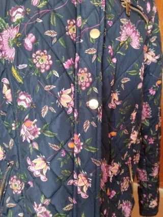 Chaqueta acolchada con un bonito estampado floral. - Diseño acolchado con rombos. - Cierre de cremallera y botones. - Bolsillos frontales con cremallera.