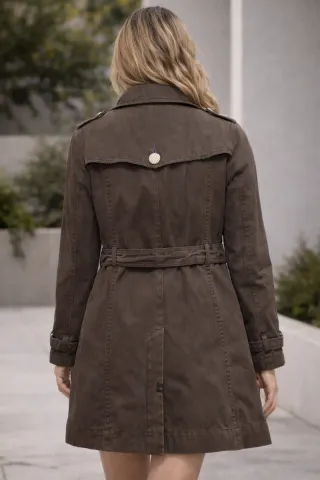 Chaqueta de mujer con un diseño elegante y moderno. - Cinturón ajustable con hebilla. - Cierre de cremallera frontal. - Dos bolsillos con botón en la parte delantera.
