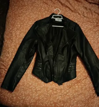 Chaqueta de cuero con un diseño moderno y elegante. - Material: Cuero genuino. - Cierre frontal con cremallera. - Bolsillos laterales con cremallera. - Cuello redondo.