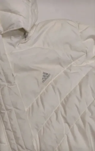 Precio no negociable, estado impecable . Chaqueta Adidas de mujer en talla 42, en un color entre crema y crudo, casi blanco. Lleva relleno de pluma y plumón de pato, indicado en la etiqueta como Dup ont downlining. También incluye la tecnología Clima365, diseñada por Adidas para regular la temperatura corporal y aportar confort durante todo el año, manteniendo el calor cuando hace frío y facilitando la transpiración cuando es necesario. Adidas es una marca conocida por la calidad de sus prendas, y esta chaqueta destaca por ser muy ligera, cálida y cómoda, ideal para invierno o días fríos sin añadir peso. Está impecable.Como nueva
