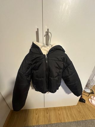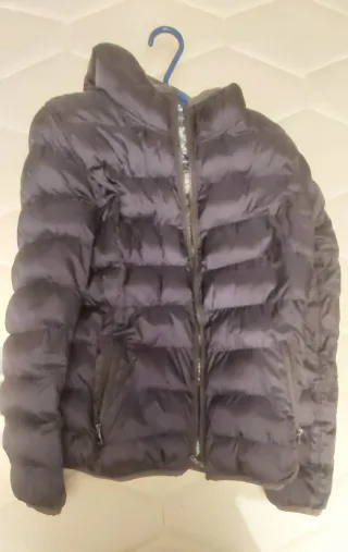 Chaqueta acolchada con un acabado brillante. Es talla 13 ,14. Pero yo uso la talla S ye queda perfecta - Diseño acolchado. - Cuello alto. - Cierre de cremallera frontal. - Bolsillos laterales.