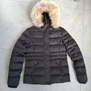 Cazadora acolchada para mujer. 100% Poliamida Relleno 80% plumón 20%pluma Diseño moderno y ligero. Cuello alto hebillas en cuello y mangas Cierre de cremallera y botones. Bolsillos frontales. cierre cremallera talla 38 Mediana 19€