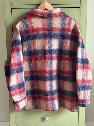 Chaqueta de cuadros de Zara. Un diseño versátil y moderno. - Cuadros en tonos beige, azul y marrón. - Cierre de botones. - Dos bolsillos en la parte delantera.